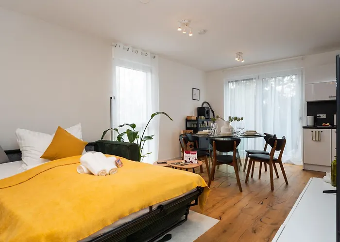 Апартаменти Noblenest: Terrasse - Netflix - Kaffee Відень пропонують близькість до таких туристичних визначних пам'яток, як Karl Seitz, що лише за 5 хвилин ходьби. Апартаменти з терасою та видом на внутрішній двір розташовані у районі 21. Флорідсдорф.